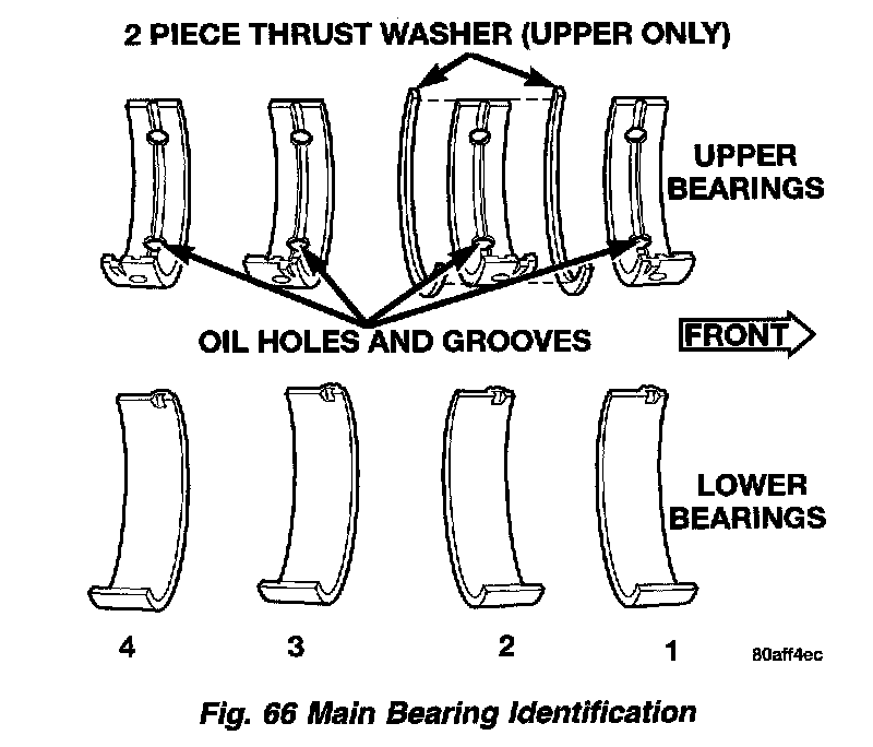 DESCRIPTIONBearing caps are not interchangeable and are marked to insure correct assembly (Fig. 65). Upper and lower bearing halves are NOT interchangeable.