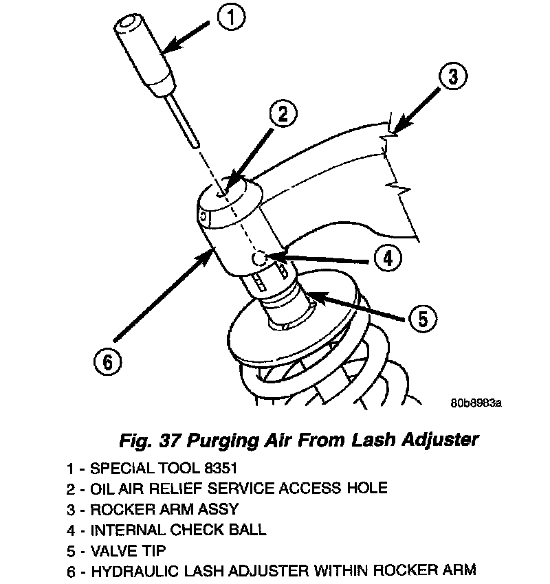 STANDARD PROCEDURE - HYDRAULIC LASH ADJUSTER BLEEDINGUse this procedure to manually bleed aerated oil from the lash adjuster and remove sponginess.