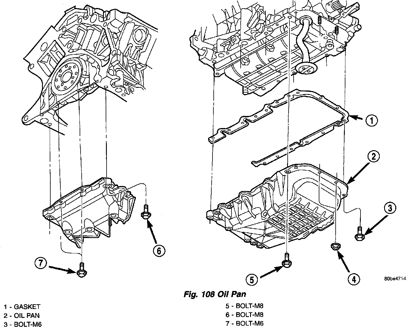4. Remove oil pan (Fig. 108).