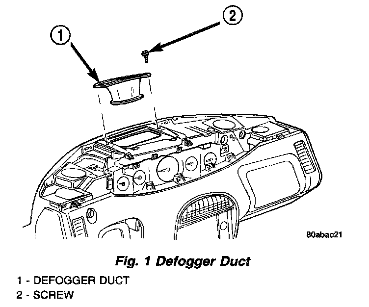 REMOVALThe defogger duct can not be removed with the instrument panel in place. The panel needs to be moved rearward to allow clearance for the defogger duct to clear the windshield.