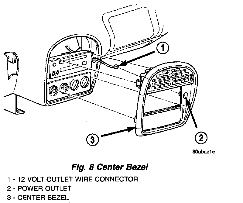 1. Pull center bezel straight rearward along the sides of the radio and A/C control openings to disengage four clips.