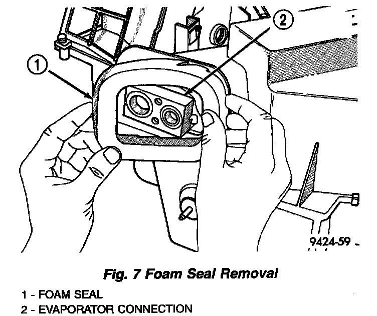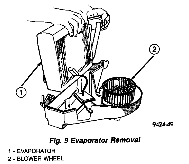 REMOVALThis vehicle uses an aluminum plate and fin style evaporator. It is located in the Evaporator/Blower module.