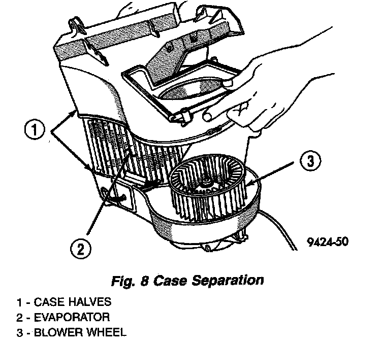 1. Remove the clips and screws that hold the Unit Housing to the Evaporator/Blower Module. Then separate the two units.