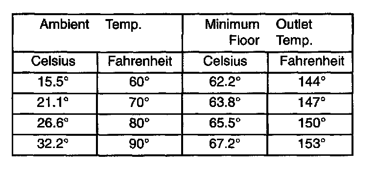 Engine coolant is provided to the heater system by two 16 mm (5/8 inch inside diameter) heater hoses. With engine idling at normal running temperature, set the control to maximum heat, floor, and high blower setting. Using a test thermometer, check the air temperature coming from the floor outlets, refer to Temperature Reference Chart.