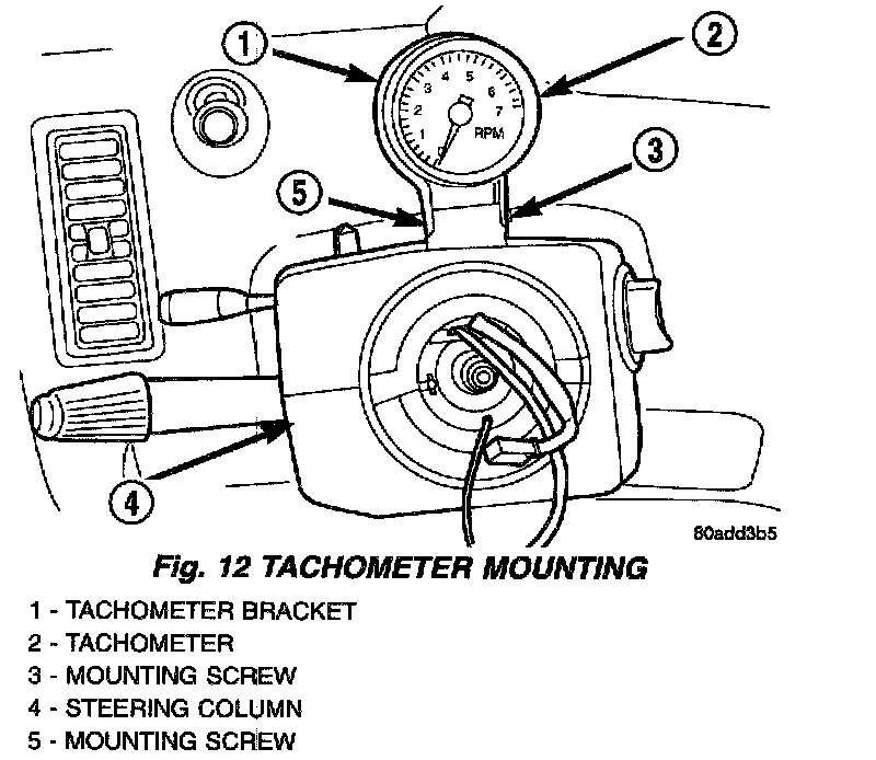 3. Remove two torx head screws. One to each side of the tachometer mounting bracket (Fig. 12).