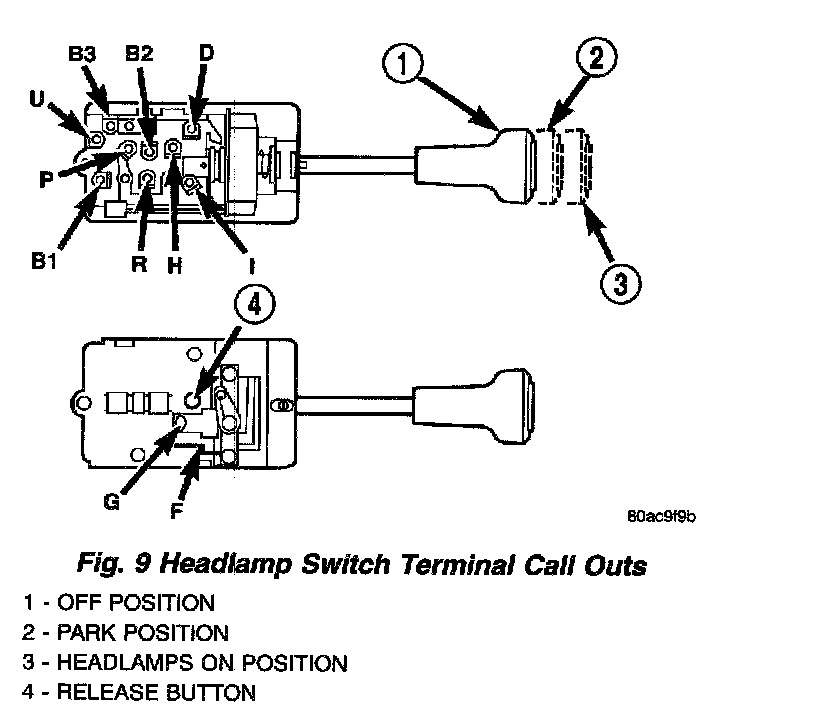 Fig. 9 Headlamp Switch Terminal Call Outs: