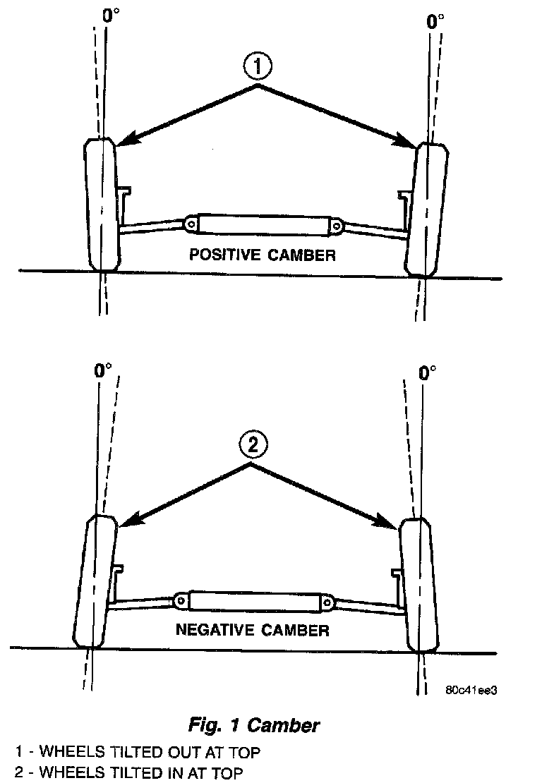 Camber is the inward or outward tilt of the top of the tire and wheel assembly. Camber is measured in degrees of angle relative to a true vertical line. Camber is a tire wearing angle.