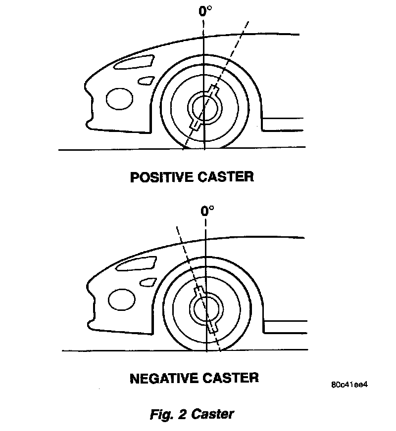 - Rearward tilt (upper ball joint trailing lower) results in a positive caster angle.