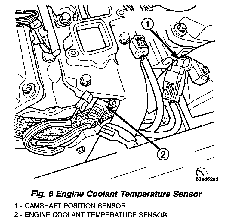 NOTE: A new ECT sensor has thread sealant applied to threads. If reinstalling a used sensor, apply Mopar thread sealer (or equivalent) to ECT sensor threads.