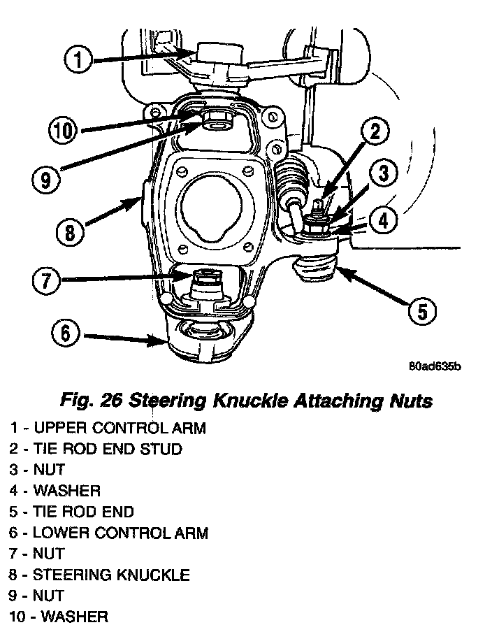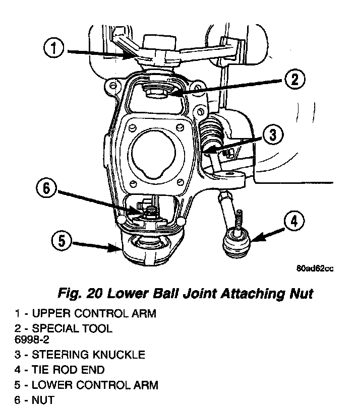 NOTE: The lower ball joint to steering knuckle attaching nut is not to be reused. Discard the attaching nut when it is removed.