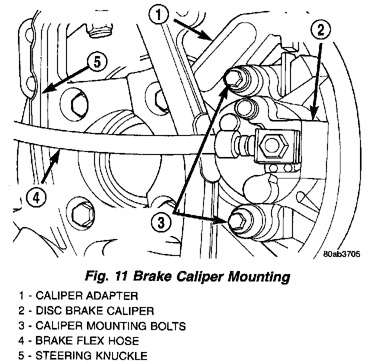 12. Install the disc brake caliper on the caliper adapter, reversing the removal procedure.