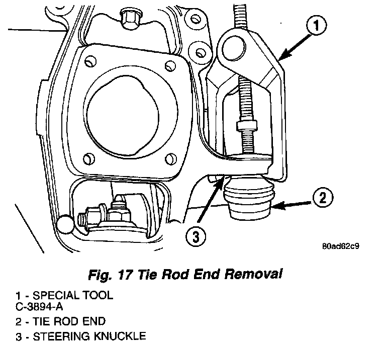 11. Remove the outer tie rod from the steering knuckle using Puller, Special Tool C-3894-A.