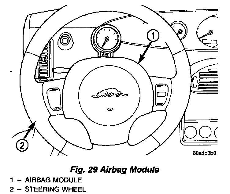 - WHEN AN UNDEPLOYED AIRBAG ASSEMBLY IS TO BE REMOVED FROM THE STEERING WHEEL, DISCONNECT BATTERY GROUND CABLE AND ISOLATE. ALLOW SYSTEM CAPACITOR TO DISCHARGE FOR TWO MINUTES, THEN BEGIN AIRBAG REMOVAL.