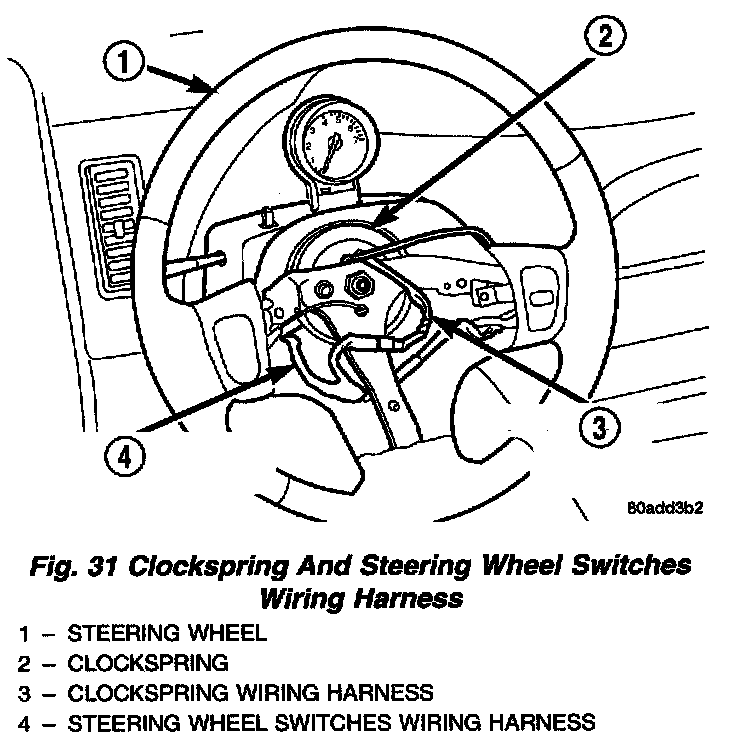 5. Disconnect clockspring wiring harness from wiring harness for steering wheel mounted switches.