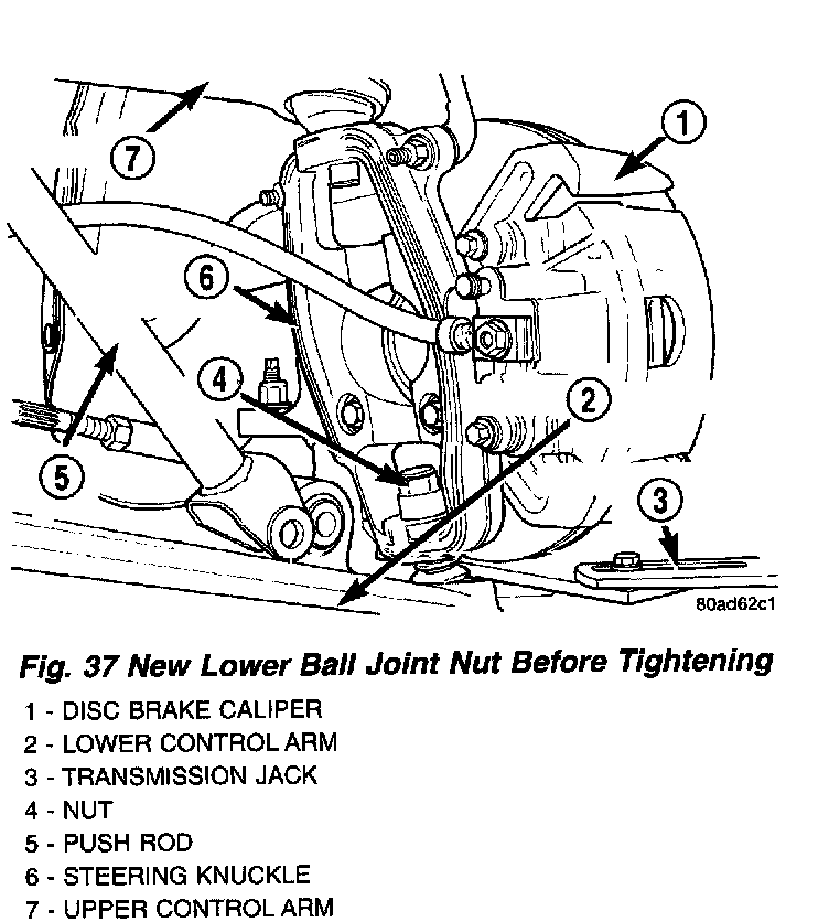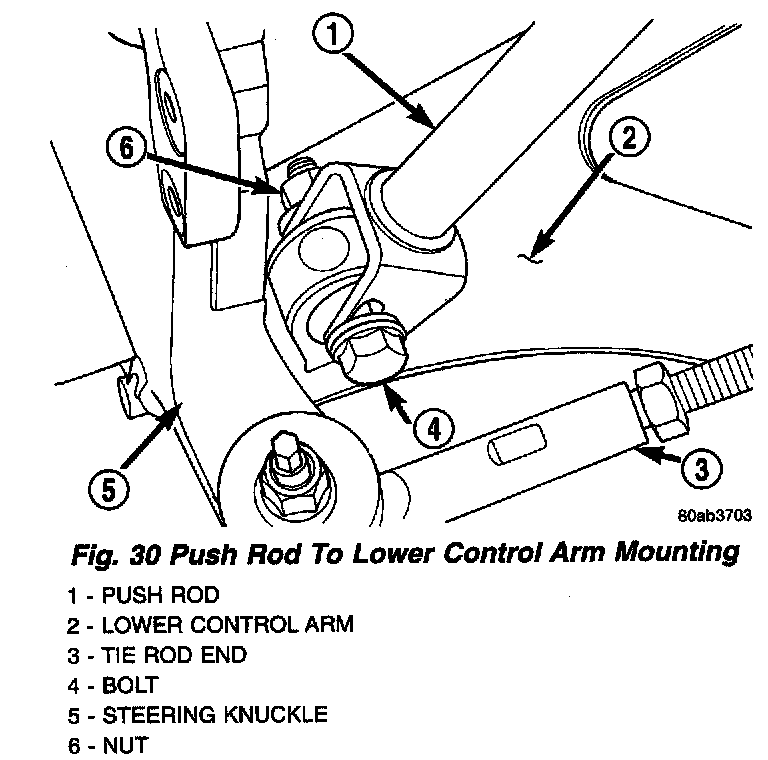 13. Tighten the push rod to lower control arm attaching nut and bolt to a torque of 163 Nm (120 ft. lbs.).