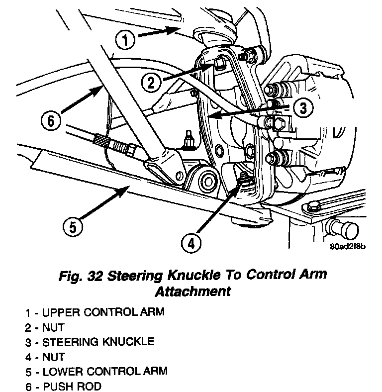 NOTE: When installing the push rod attaching bolt, it must be installed so the head of the bolt is facing to the rear of the vehicle, and the nut is toward the front of the vehicle. This is required to maintain clearance from the steering knuckle when the steering is turned to full lock.