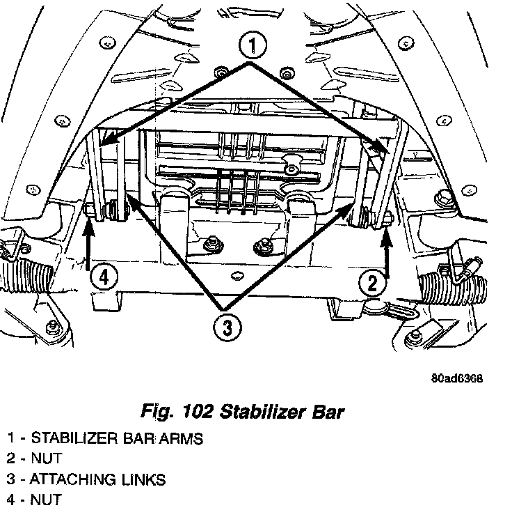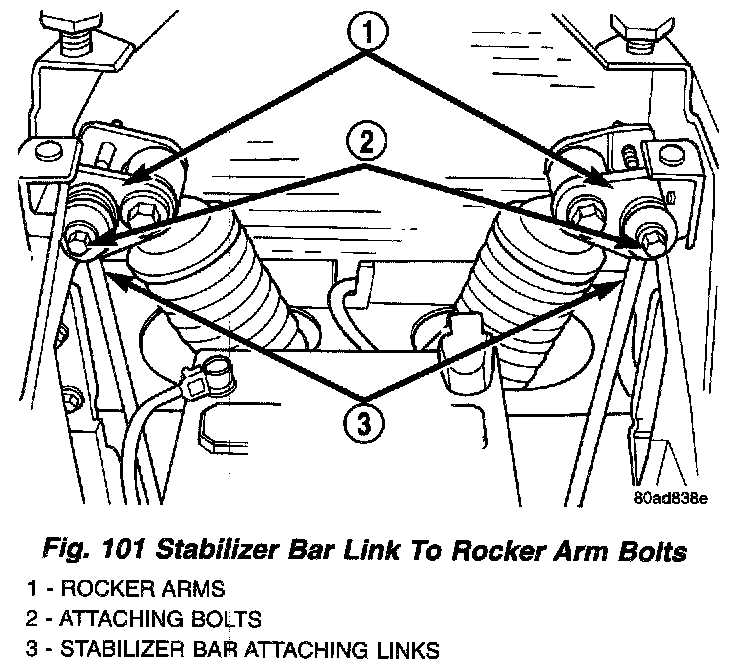 NOTE: When installing the stabilizer bar link to rocker arm bolts it may be necessary to raise or lower the vehicle slightly. This will help align the bolts with the holes in the rocker arms making it easier to install the bolts in the rocker arms.