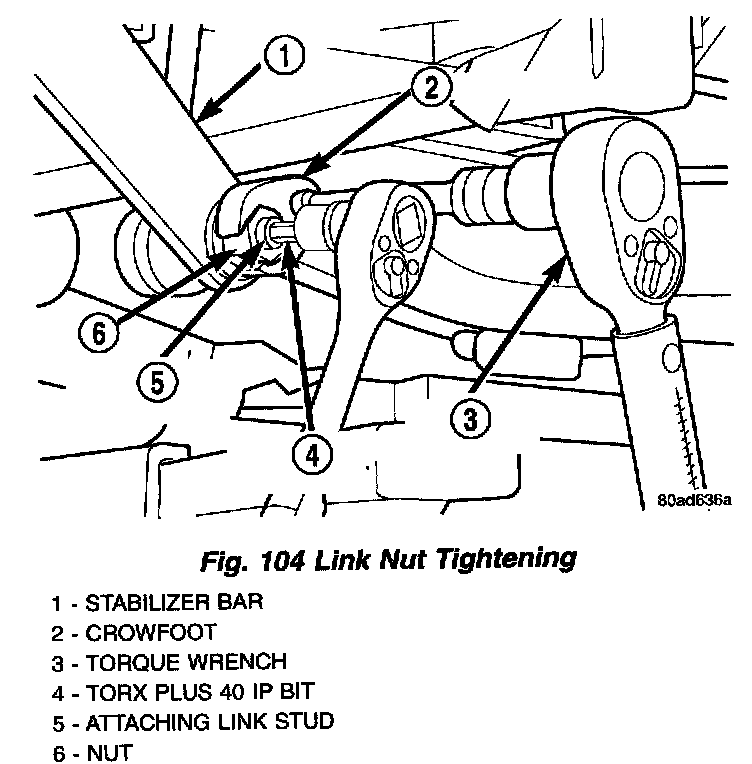 5. Install the nuts on the stabilizer bar link bolts. Tighten the stabilizer bar link bolts using a flex socket and extension to a torque of 60 Nm (45 ft. lbs.).