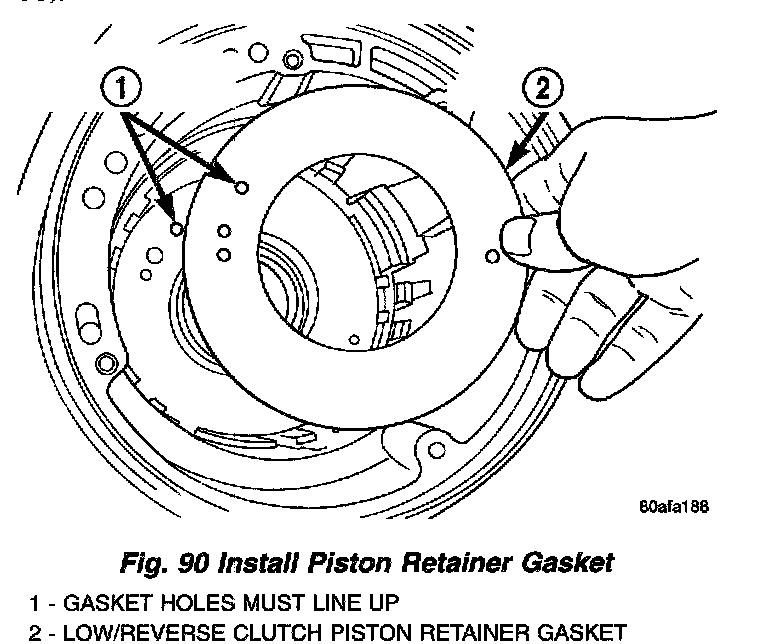 2. Install low/reverse piston retainer gasket (Fig. 90).