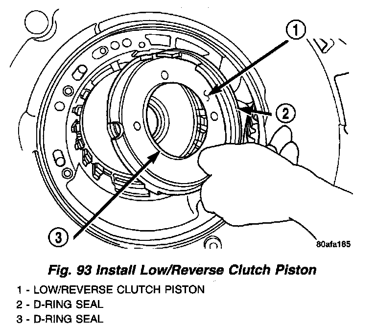5. Install low/reverse clutch piston (Fig. 93).