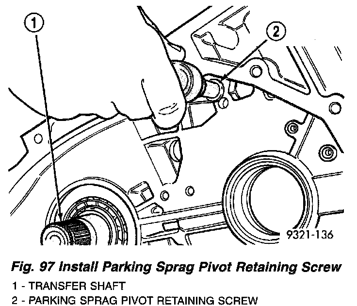 8. Install park sprag pivot retaining screw (Fig. 97) and torque to 5 Nm (45 in. lbs.).