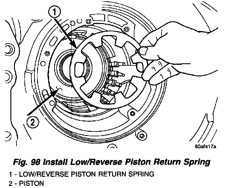 9. Install low/reverse piston belleville spring into position (Fig. 98).