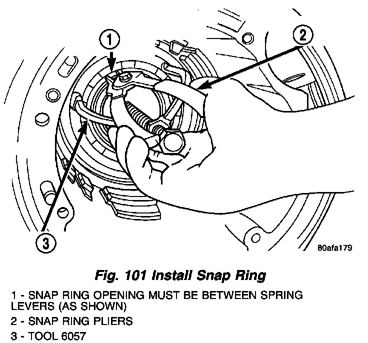11. Install snap ring and remove compressor tool (Fig. 101).