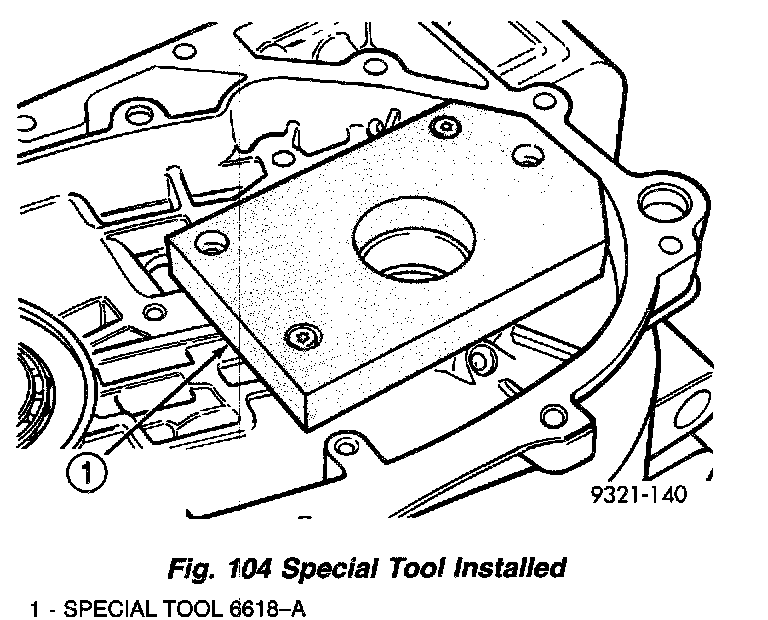 b. Install special tool 6618A (Fig. 104). Lightly tighten retaining screws. Screws should be below the plate surface, but do not snug screws.
