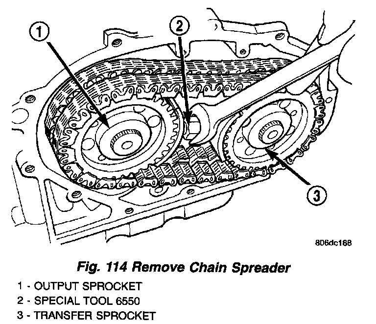 17. Remove chain spreader (Fig. 114).