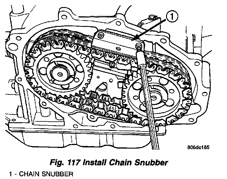 19. Install transfer chain snubber (Fig. 117) and torque screws to 5 Nm (45 in. lbs.).
