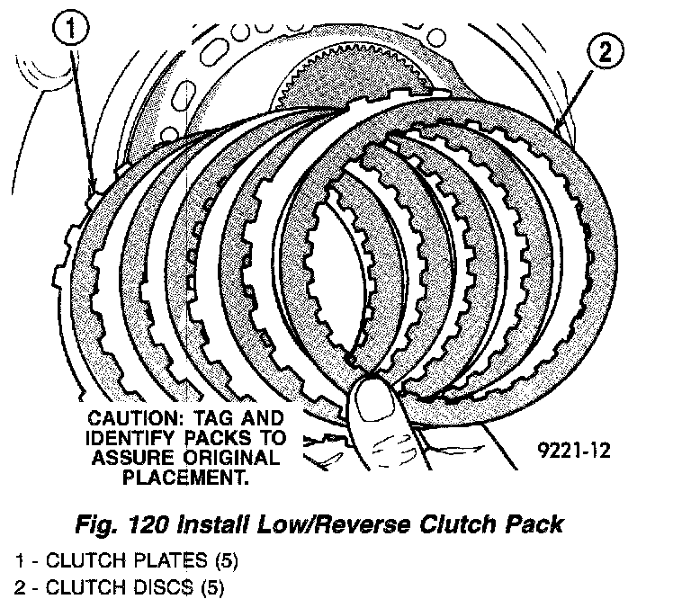 23. Install low/reverse clutch pack (Fig. 120).