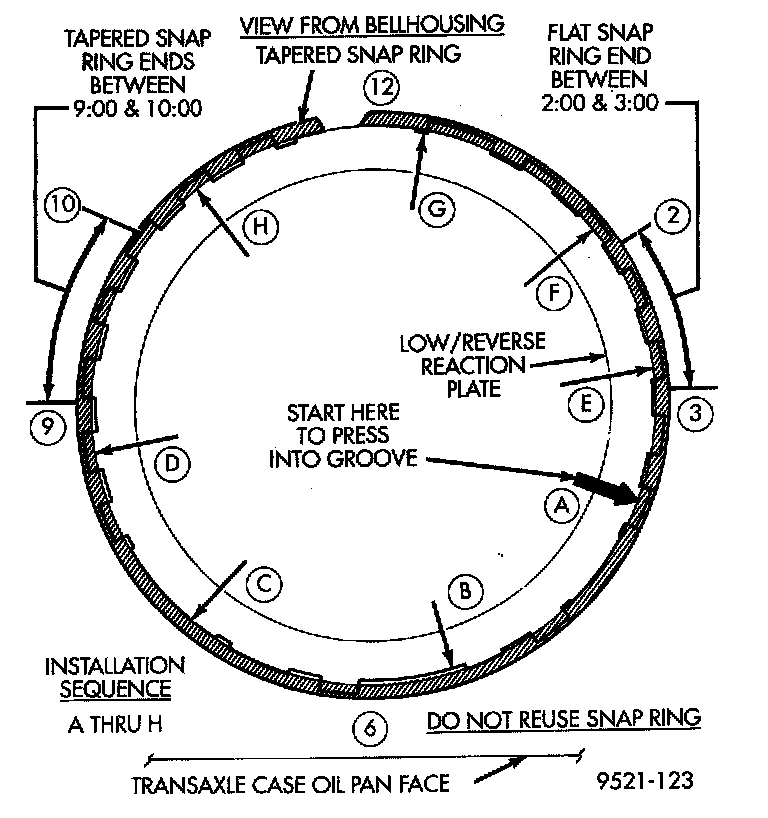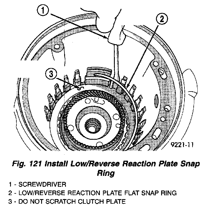 24. Install low/reverse reaction plate snap ring (Fig. 121).