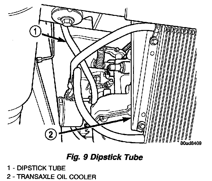 3. Remove transaxle dipstick tube (Fig. 9).