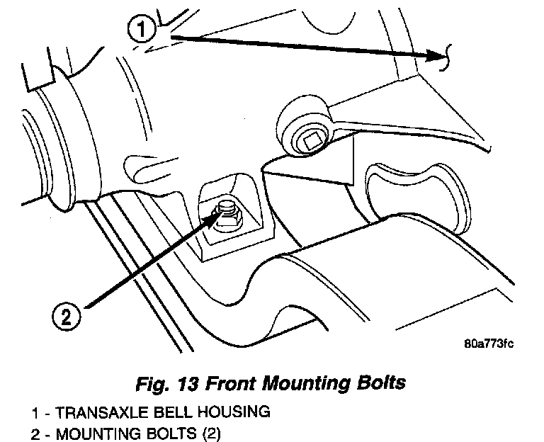 14. Remove transaxle front mounting bolts (Fig. 13).