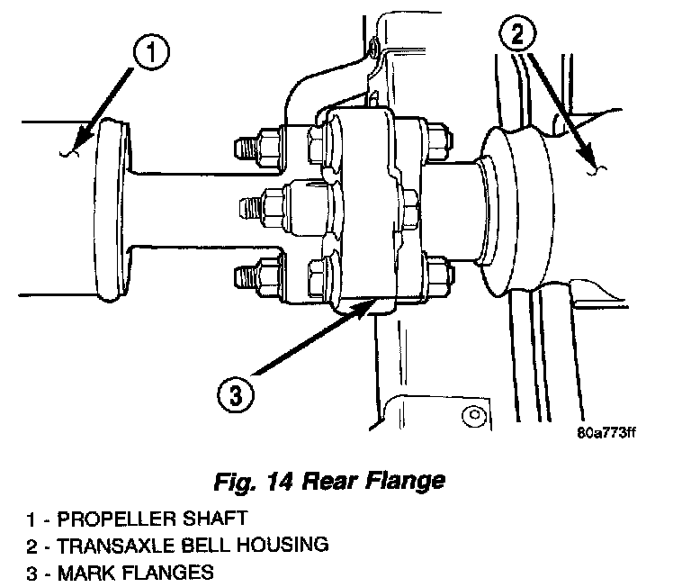15. Mark propshaft at rear (Fig. 14) drive flange for assembly reference.