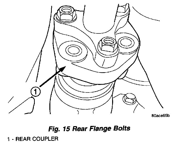 16. Remove propshaft rear bolts at transaxle bell housing drive flange (Fig. 15).