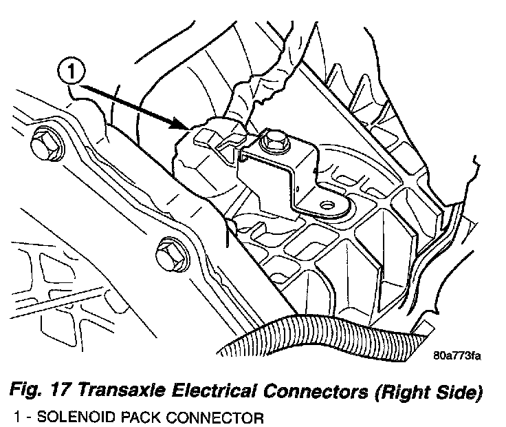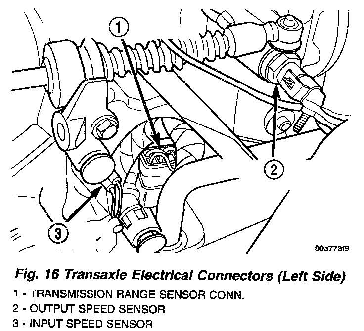 20. Remove transaxle solenoid, input speed, output speed, and TRS connectors from the transaxle (Fig. 16) and (Fig. 17).