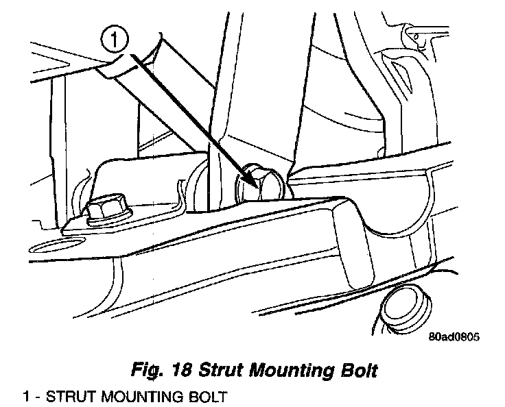23. Remove rear strut lower mounting bolt and nut (Fig. 18).
