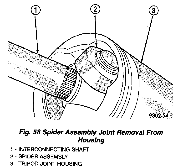 3. Slide the interconnecting shaft and spider assembly out of the tripod joint housing (Fig. 58).