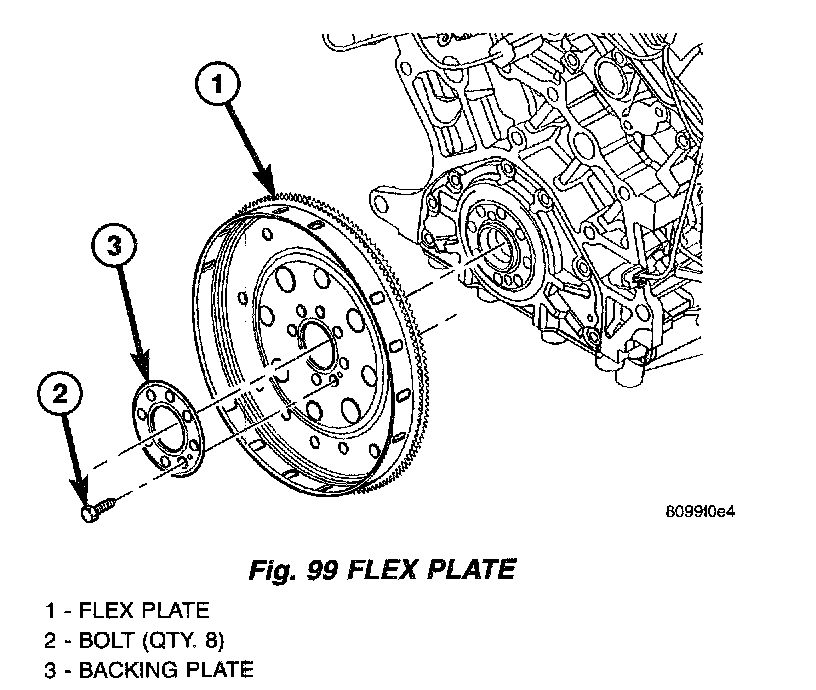 1. Position flex plate with backing plate on the crankshaft (Fig. 99).