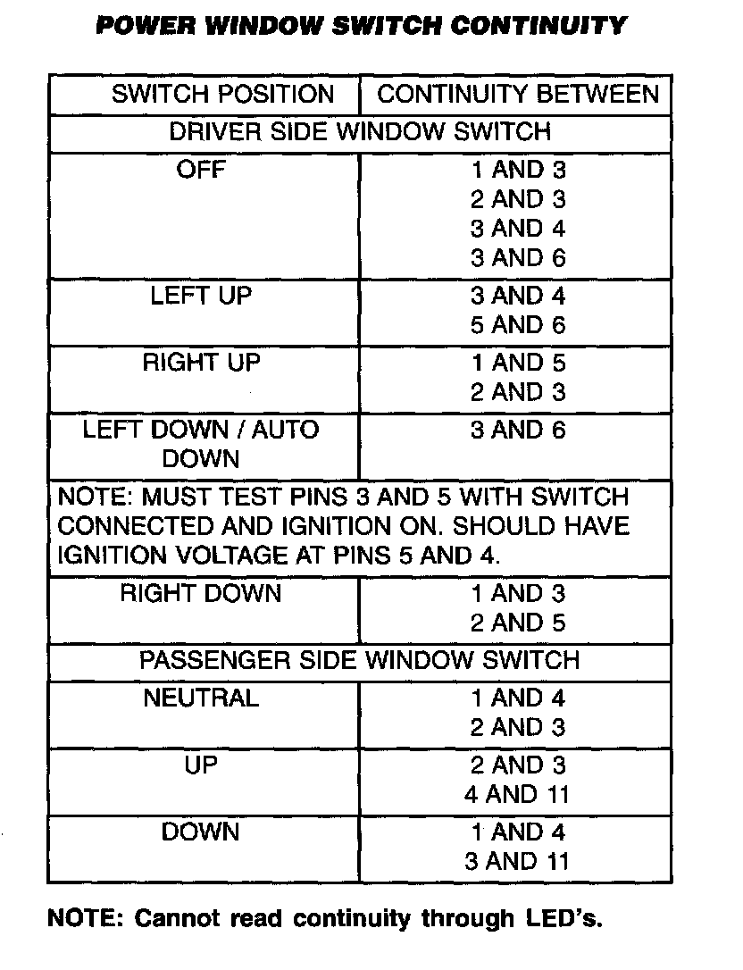 Power Window Switch Continuity: