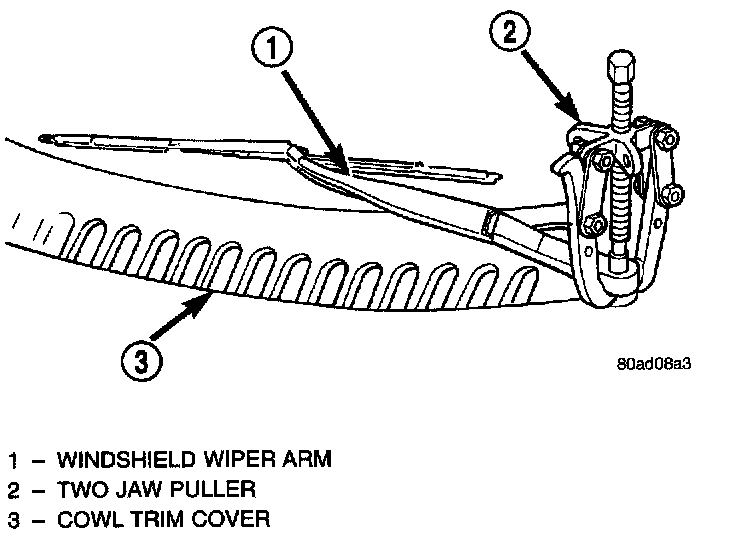 REMOVAL1. Place the wiper arm/blades in the PARK position and turn ignition OFF.