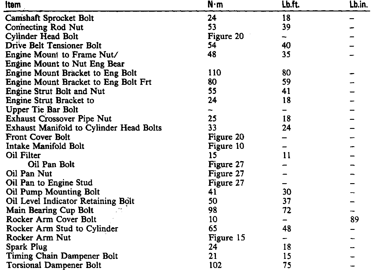 Torque Specifications: