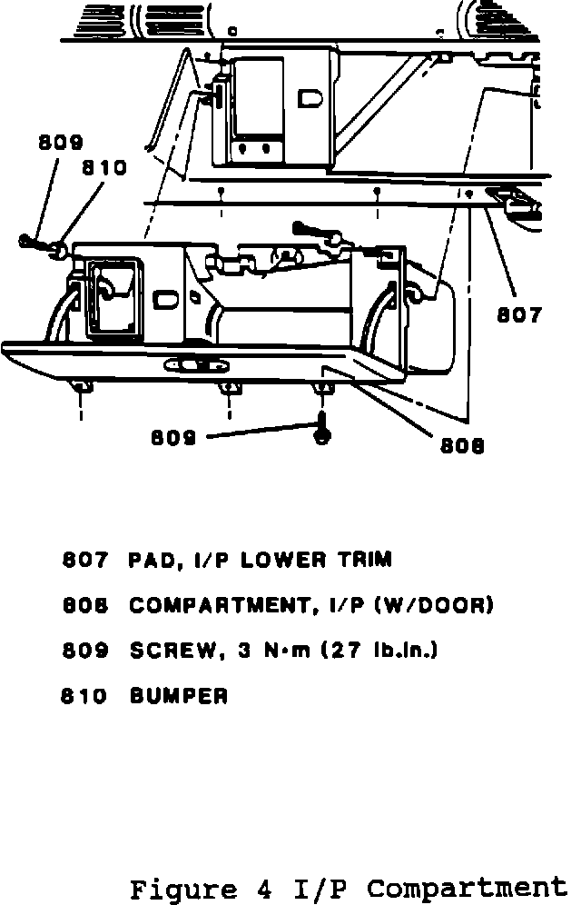 Open I/P compartment door.7. Three screws (809) from bottom of I/P compartment insert (808) (Figure 4).