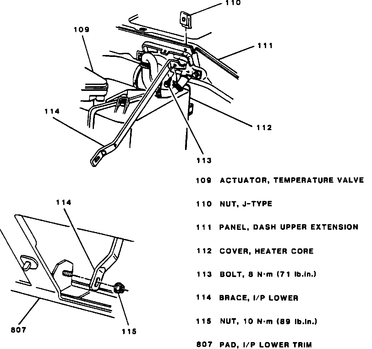 12. I/P lower brace (114) from I/P (early model vehicles) (Figure 5).
