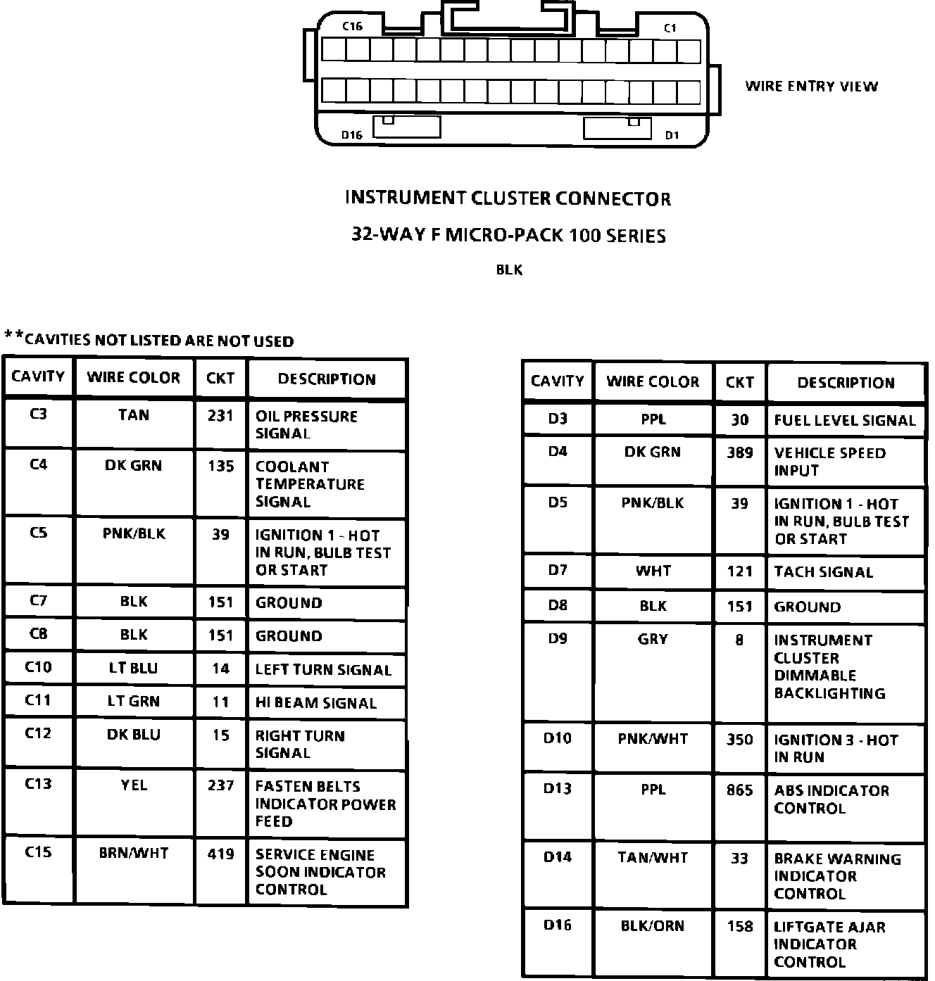 Instrument Cluster Connector: