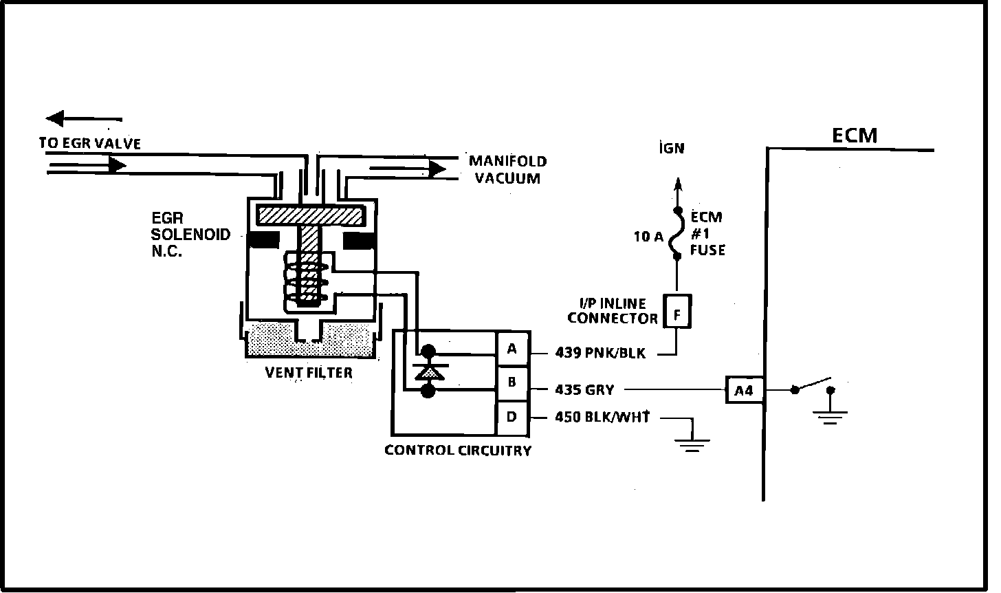 2. Grounding the diagnostic test terminal should energize solenoid and allow vacuum to pass to the EGR valve.