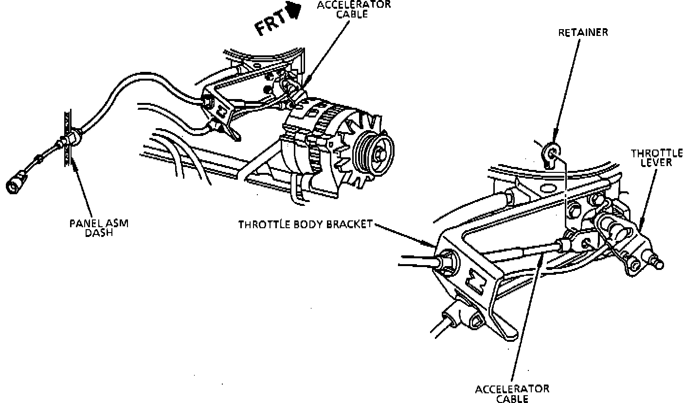 - Accelerator cable to throttle body bracket.