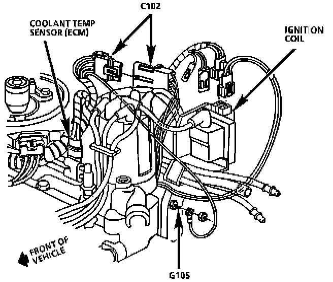 Coolant Temperature Sensor/Switch (For Computer): Locations