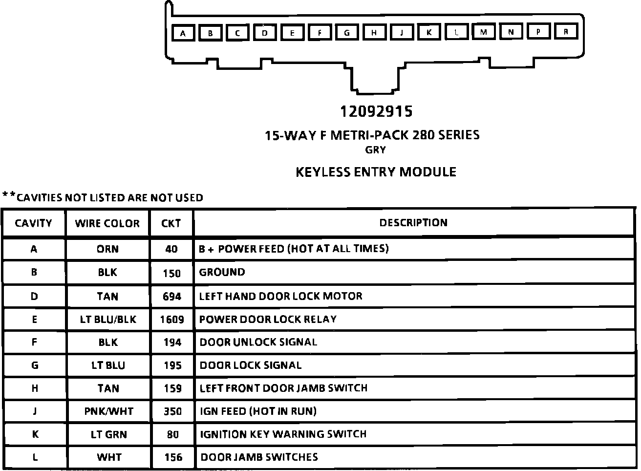 Keyless Entry Module Connector Face: